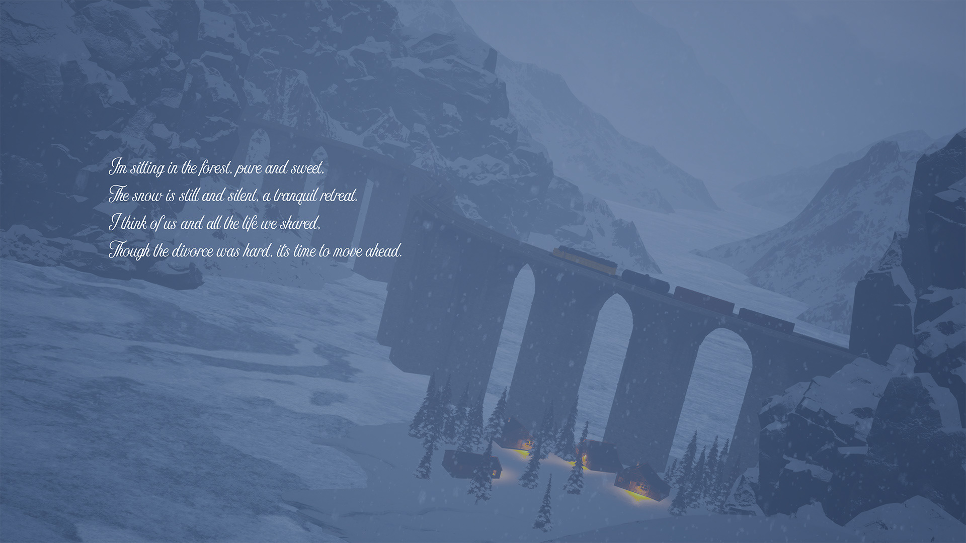 Bottle is a very short game in which you play as an alcoholic man of solitude. It is about the mood of melancholy in winter nature. As you walk through the path, you see the visions of a woman and hear the poems she leaves to you.